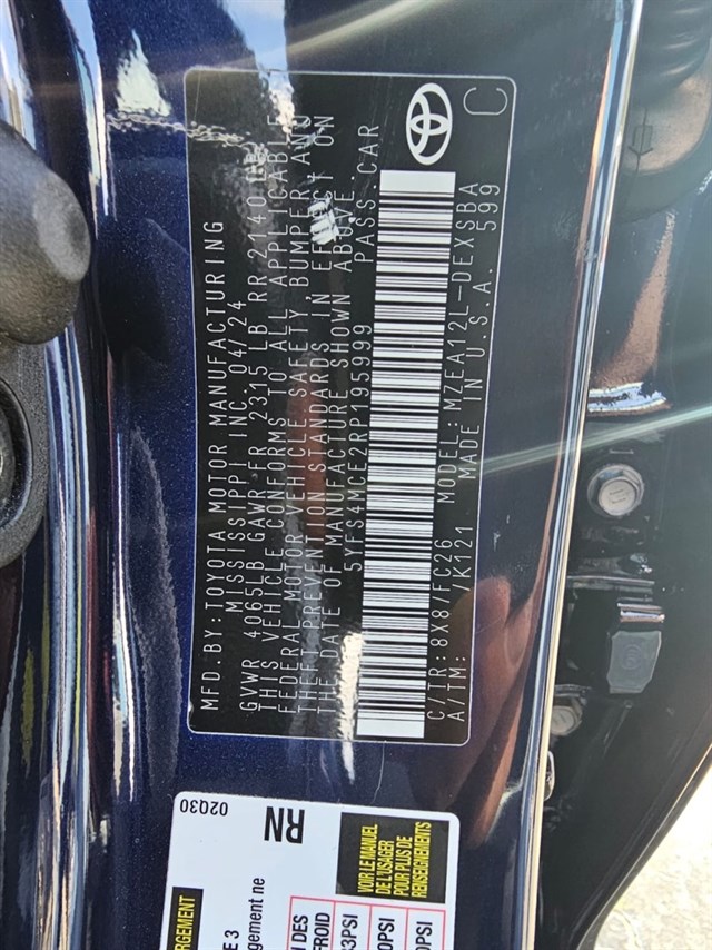 | VIN | 5YFS4MCE2RP195999 |